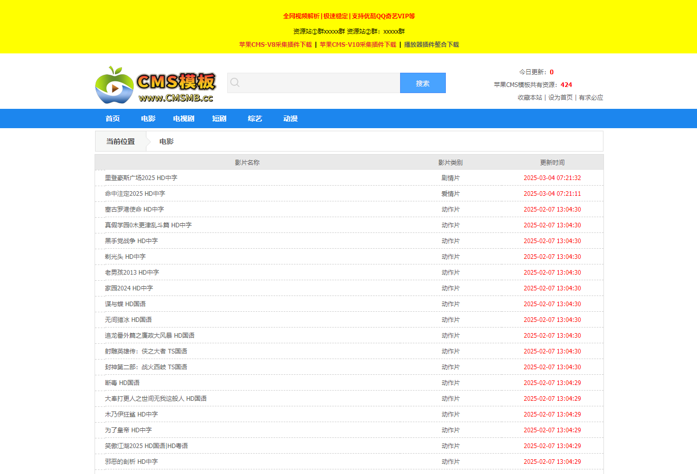苹果cms模板V10-采集模板经典视频资源网站